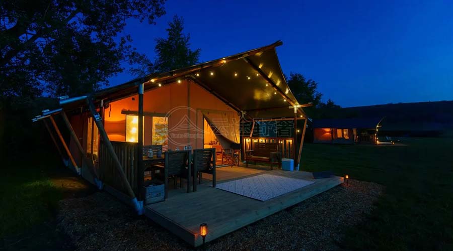 营地酒店帐篷摒弃了传统建筑对自然资源的过度开采和破坏,转而采用轻质、耐用且可回收的材料构建。这种设计不仅减轻了对土地的压力,还减少了建筑垃圾的产生,为营地营造了一个低碳、环保的住宿环境。同时,帐篷酒店还注重节能减排,通过太阳能板、风能发电等可再生能源技术,实现了能源的自给自足,降低了对外部电网的依赖,进一步减少了碳排放。