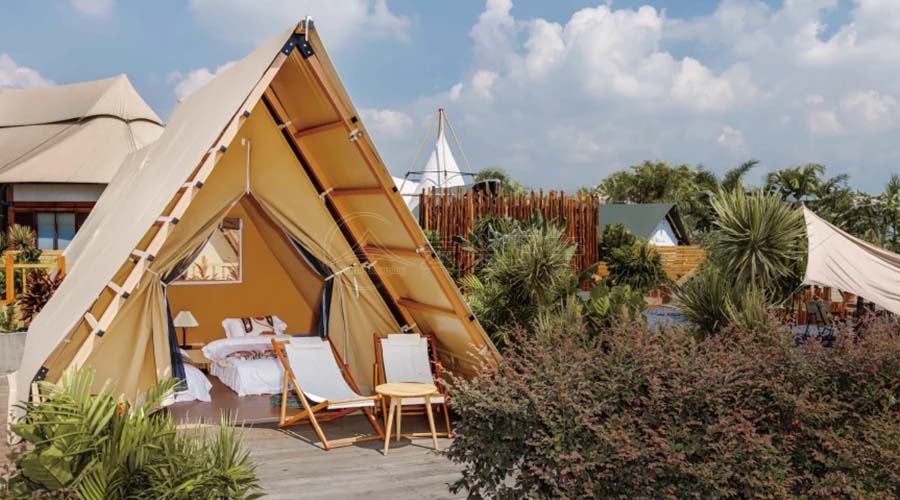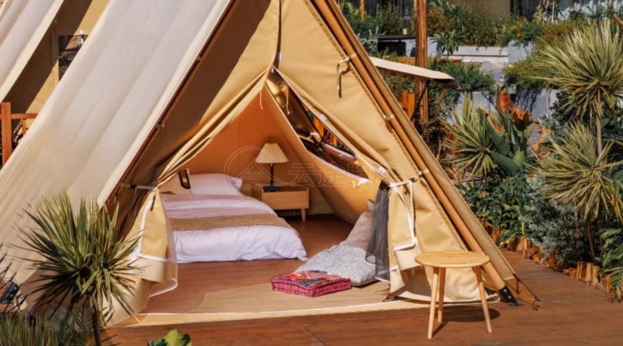 营地酒店帐篷的旅游景观构建,首先体现在对自然景观的尊重与保护上。这些帐篷通常选址在风景秀丽、生态环境良好的地区,如山林、湖畔、草原等。在帐篷的搭建过程中,设计师们会充分考虑地形地貌、植被覆盖等因素,确保帐篷的布置既不影响自然景观的完整性,又能与周围环境融为一体。同时,帐篷的材质和颜色也经过精心挑选,力求与自然景观相协调,营造出一种宁静、和谐的氛围。