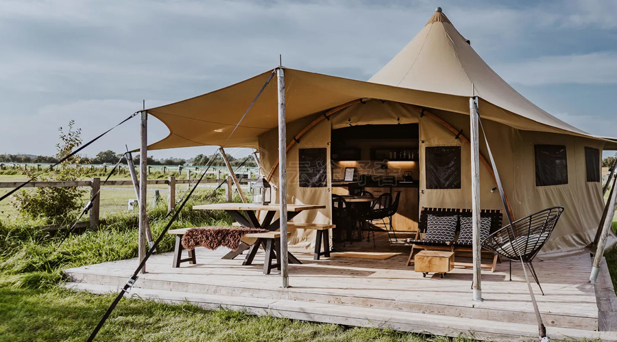 在创新设计方面,营地酒店帐篷注重将现代科技与设计理念融入其中。例如,一些帐篷采用了智能化的控制系统,如智能灯光、温控系统等,提升了游客的住宿体验。同时,帐篷的外观和内饰设计也充满了创意和个性化,如采用独特的建筑风格、色彩搭配和艺术品装饰,让游客在享受自然美景的同时,也能感受到艺术的魅力。除了自然与科技的融合,营地酒店帐篷还注重文化元素的融入。它们通过挖掘当地的历史文化、民俗风情等,将人文元素巧妙地融入到帐篷的设计、装饰和活动中。例如,在帐篷内部设置当地特色的手工艺品展示区,或者举办文化讲座、民俗表演等活动,让游客在入住的过程中深入了解当地的文化传统和生活方式。