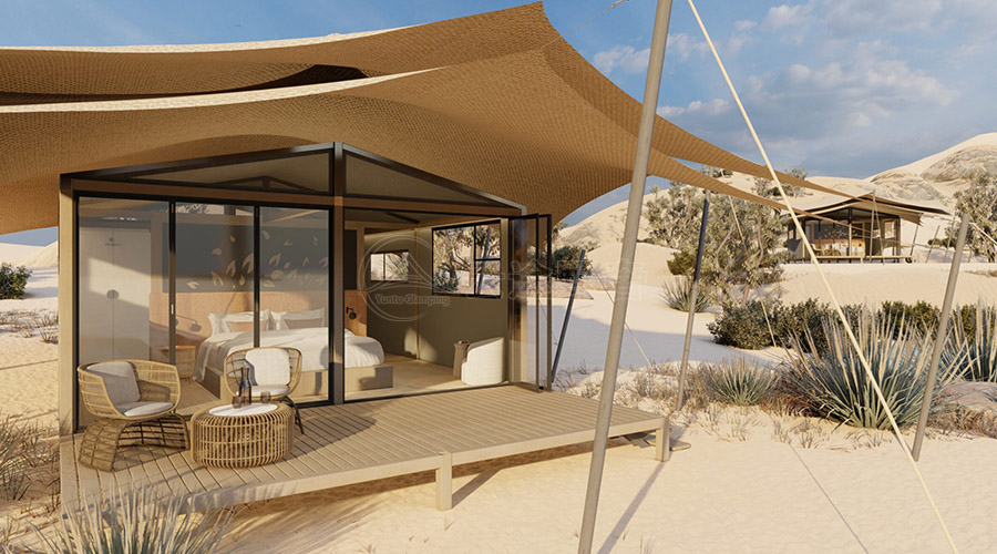 帐篷酒店的长寿命密码,藏在其“可生长”的模块化基因中。区别于传统建筑的固定形态,帐篷酒店采用标准化铝合金框架与可拆卸连接件,每个模块既是独立单元,又能通过螺栓拼接实现横向扩展或纵向叠加。这种设计使帐篷酒店能随运营需求“进化”:当客流量增长时,可在原有结构上增设卧室模块;当功能升级时,可替换为智能玻璃穹顶或光伏一体化屋顶。k8凯发篷房为沙特AlUla沙漠设计的帐篷酒店,通过模块化组合实现了从20间客房到200间度假村的跨越,而其核心框架结构在15年运营中未出现任何变形。