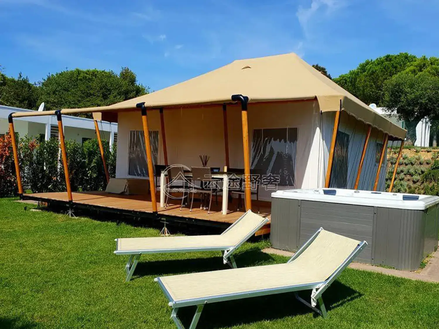 东篱帐篷以其独特的设计和卓越的舒适性著称。这种帐篷房子融合了自然环境和高质量的设施,提供了一个舒适的度假空间。帐篷通过精心设计,以确保为您提供了一个舒适的度假空间。东篱帐篷内的设施包括舒适的床铺、私人浴室、空调和其他必要的设施。您可以在这里放慢节奏,享受宁静的田园生活,并与亲朋好友共度难忘的时光,身临其境地感受大自然的魅力。